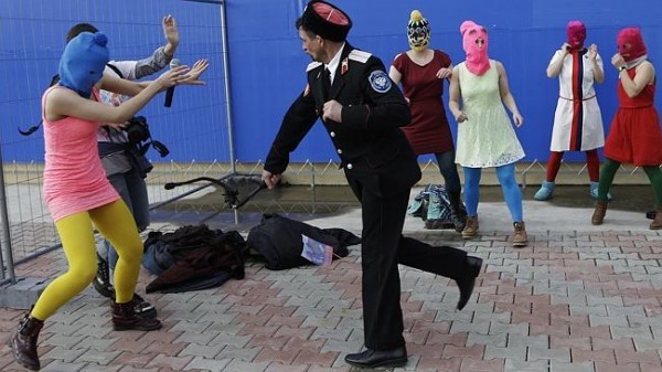 СМИ и блогосфера всполошились инцидентом, который произошел в олимпийском Сочи. Участники скандальной панк-группы нарядились в привычные для них сценические костюмы, которые они опробовали в храме Христа Спасителя. Но тут подоспели кубанские казаки, которые отлупили нагайками участниц несанкционированного митинга.